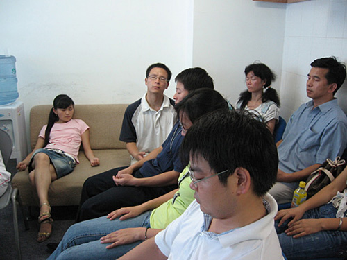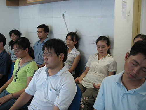 图1:学员在老师的引导下,放下包负,进入宁静安祥的深度放松。