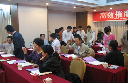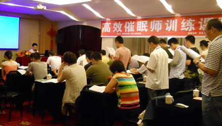 唐喜明催眠治疗师培训课程:学员正在训练语言与声音的撑控